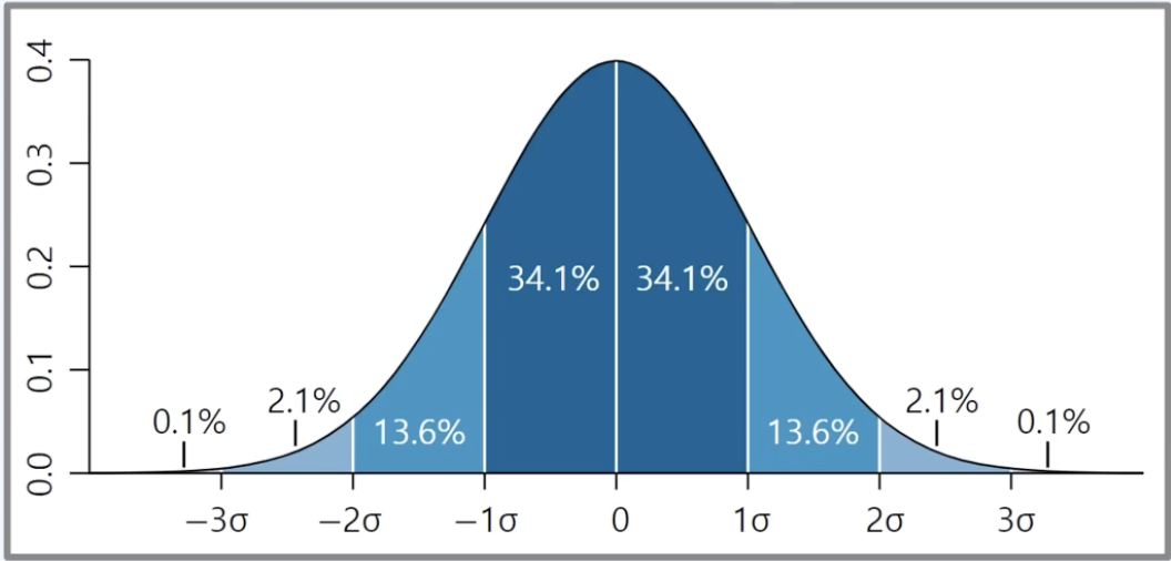- 관측되는 값의 약 98%가 ±2σ 범위 안에 속한다.(σ = 표준편차)