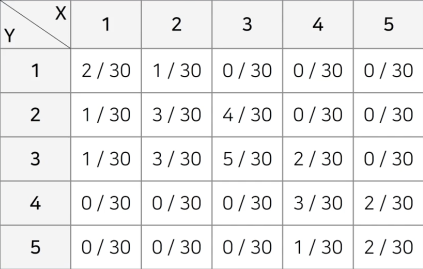 - 결합 확률: 두 사건 X와 Y가 동시에 발생할 확률로, 두 확률 변수의 교집합이 발생할 확률