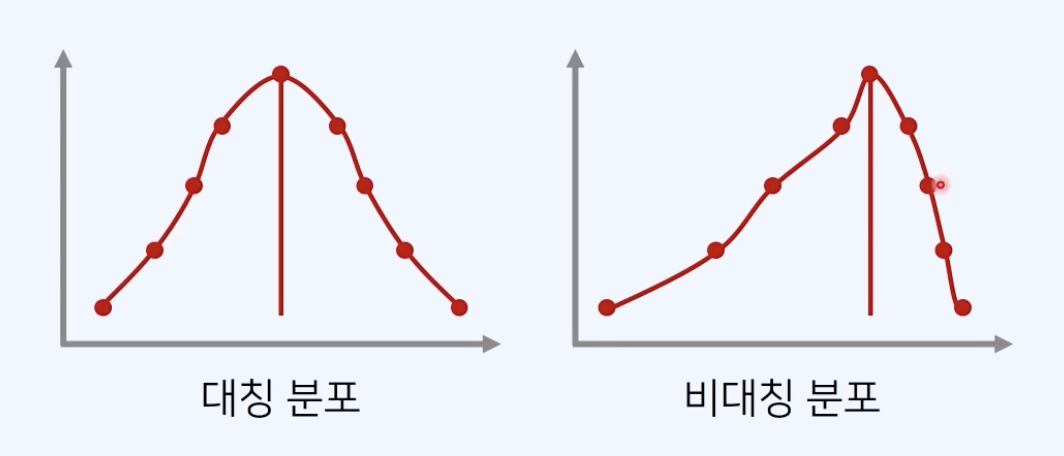 - 평균: 데이터의 분포가 정규분포처럼 대칭적인 경우